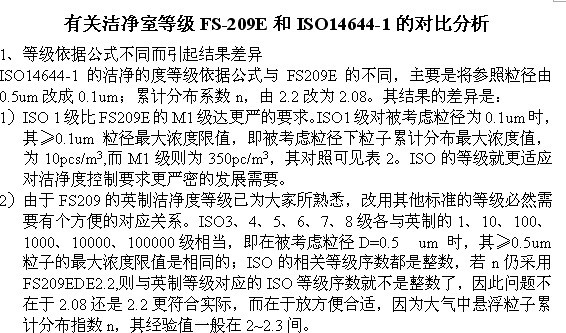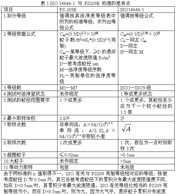 FS-209E和ISO14644-1对比