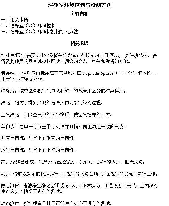 洁净室环境控制与检测方法